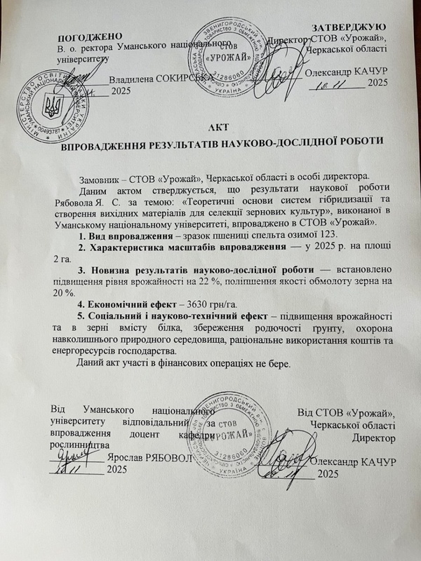 Читати повністю7 листопада 2025 року викладачі кафедри рослинництва Уманського національного університету провели профорієнтаційну зустріч в Іллінецькому аграрному фаховому коледжі.