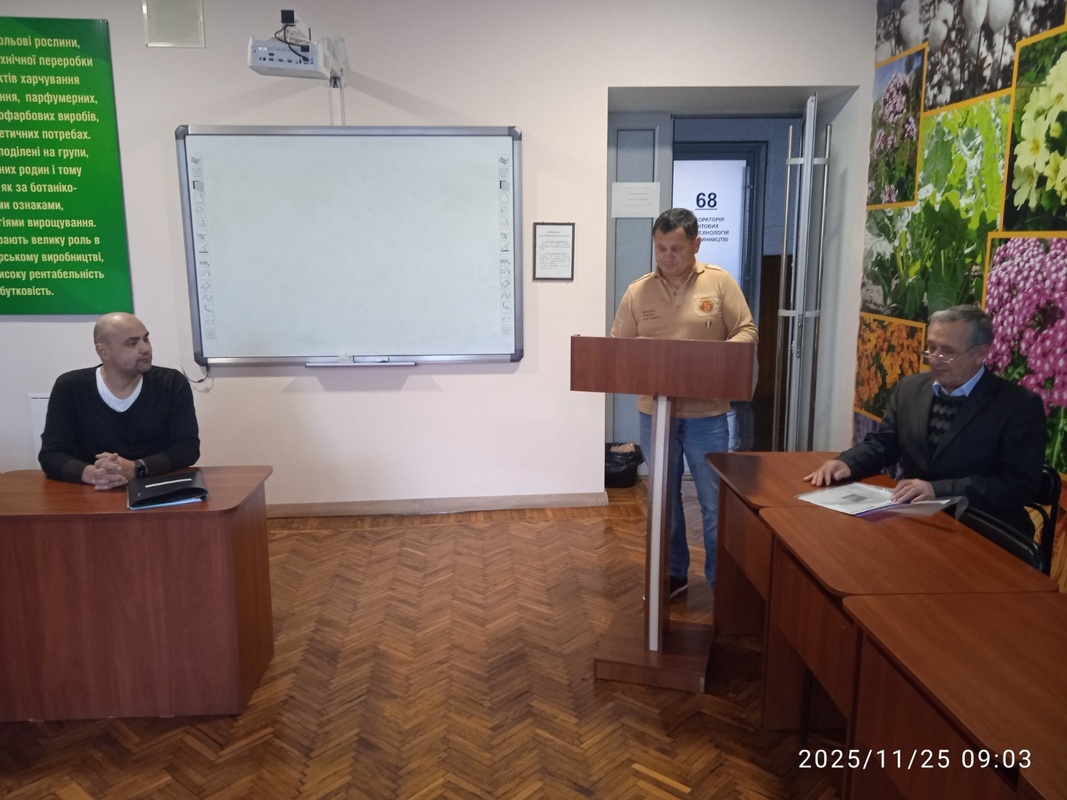 Наступним етапом були доповіді здобувачів ступеня, які проходили під головуванням завідувача кафедри рослинництва, доцента Віталія Кравченка. Кожен із них висвітлив: 1) виконання індивідуального плану наукової роботи, 2) ступінь готовності дисертації та 3) перелік опублікованих результатів досліджень.