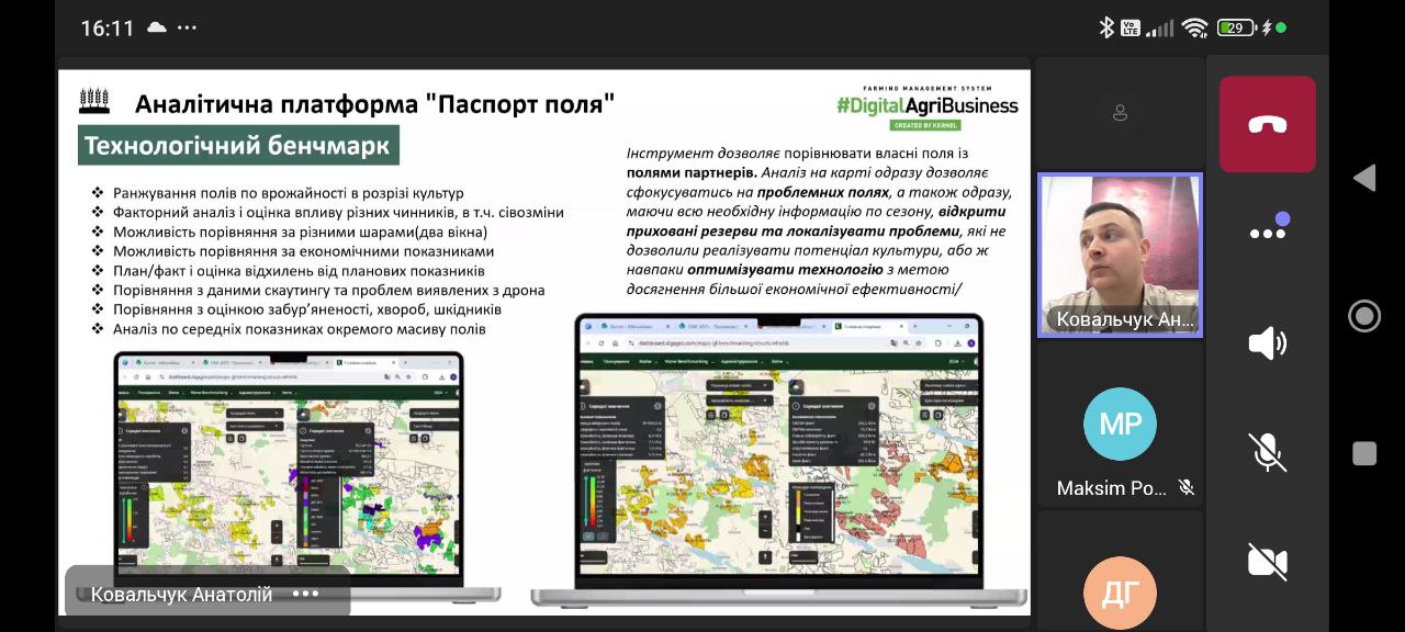 12 грудня 2025 року НПП кафедри рослинництва та студенти 41-а групи факультету агрономії Уманського національного університету взяли участь у онлайн-лекції «Діджиталізація агробізнесу». Метою заходу, організованого компанією «KERNEL», було ознайомлення із сучасними цифровими технологіями управління в АПК та розвиток відповідних компетентностей майбутніх фахівців.