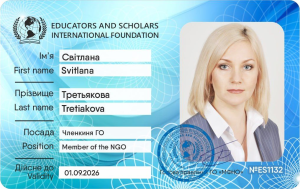 Членкиня громадської організації «Міжнародна фундація науковців та освітян» IESF, № ES 1132 від 01.09.2022 року по теперішній час.